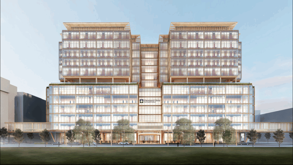 The state-of-the-art facility will consolidate and expand outpatient and inpatient neurological services in a new 1,000,000+ sf building on the Cleveland Clinic Main Campus. 210 inpatient rooms, 18 ORs including Hybrid, IMRIS, Biplane. MRIs include 1 [7T] Clinical & Research + 2 [3T] Clinical + 1 [3T] Research + 1 [1.5T] Clinical + 1 [3T] Shelled Clinical + 1 MRI Simulator.